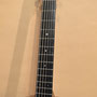楽器のコンディションはキズの類は少なめでまずまずの美品コンディションなんですが、残念ながらボディー・トップに1本クラック・リペアー跡があります。トップの6弦ブリッジ下からエンドまでクラックが入り接着修理されています。ボディー内部からはしっかりと補強が打たれていますので、今後お使い頂くのには強度的な心配はありません。表面上は見る角度によっては全然目立ちませんが、見る角度を変えると黒っぽい筋に見えやや目立ちます。その他にもトップにはコリコリとぶつけたような浅いキズがいくつか見つかりますが、ほとんどのキズが光の反射で見なければ気付かない程度の浅いキズばかりです。SIDE&BACKにかけてもスレ程度は見つかりますが、取り立てて気になる程のキズは無いかと思います。過去にPUを搭載していたようで、エンドピンはオーバー・サイズの物にリプレイスされています。