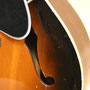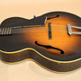 スプルースTOP、マホガニーSIDE、メイプルBACK、マホガニーNECK、ハカランダ指板&ブリッジ、実測43.3mmナット、24.75インチ・スケールの16インチ・アーチ・トップ。シリアルNo.等が無いため、はっきりした年式は不明ですが、ヘッドがテーパー・ヘッドなので40年代後半~50年頃に作られた個体になります。ネック・グリップは細過ぎず太過ぎずの手にしっくり馴染むグリップ感です。