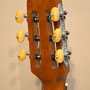 ネック・コンディションも良好で綺麗にストレート、現状での弦高は12フレット上で6弦側2.8mm、1弦側2.8mm程度のセッティングになっています。サドルにはもうあまり余裕がありませんが、現状でも普通のガット・ギターよりは弦高低めなので、プレイヤビリティーは上々かと思います。フレットの減りも無く、まんま10割の高さが残っています。